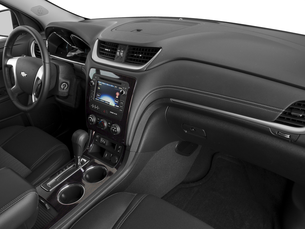 Summit White 2016 Chevrolet Traverse LT 1LT FWD 6-Speed Automatic 3.6L V6 SIDI Traverse LT 1LT, 4D Sport Utility, 3.6L V6 SIDI, 6-Speed Automatic, FWD, Summit White, Ebony Cloth, 18 x 7.5 Machined Aluminum Wheels, 3.16 Axle Ratio, 3rd row seats: split-bench, 4-Wheel Disc Brakes, 6 Speakers, 7-Passenger Seating (2-2-3 Seating Configuration), 8-Passenger Seating (2-3-3 Seating Configuration), 8-Way Power Driver Seat w/Power Lumbar, ABS brakes, Air Conditioning, Alloy wheels, AM/FM radio: SiriusXM, Bluetooth® For Phone, Body-Color Bodyside Moldings, Body-Color Heated Power-Adjustable Outside Mirrors, Bodyside moldings, Brake assist, Bumpers: body-color, CD player, Compass, Delay-off headlights, Driver door bin, Driver vanity mirror, Dual front impact airbags, Dual front side impact airbags, Electronic Stability Control, Emergency communication system: OnStar, Enhanced Driver Information Center, Exterior Parking Camera Rear, Four wheel independent suspension, Front anti-roll bar, Front Bucket Seats, Front Center Armrest w/Storage, Front Fog Lamps, Front fog lights, Front License Plate Bracket Mounting Package, Front reading lights, Frontal & Side-Impact Airbags, Fully automatic headlights, Heated door mirrors, Heated Driver & Front Passenger Seats, Illuminated entry, Interior Wood Grain Center Stack & Interior Trim, Leather-Wrapped Steering Wheel, Low tire pressure warning, Occupant sensing airbag, Outside temperature display, Overhead airbag, Panic alarm, Passenger door bin, Passenger vanity mirror, Power door mirrors, Power driver seat, Power steering, Power windows, Preferred Equipment Group 1LT, Premium Cloth Seat Trim, Radio data system, Radio: Chevrolet MyLink AM/FM Stereo w/CD Player, Radio: Color Touch AM/FM/SiriusXM/CD Player, Rear air conditioning, Rear anti-roll bar, Rear Park Assist, Rear reading lights, Rear seat center armrest, Rear window defroster, Rear window wiper, Remote keyless entry, Remote Vehicle Start, Roof rack: rails only, Security system, SiriusXM Satellite Radio, Speed control, Split folding rear seat, Spoiler, Standard Speaker System, Steering wheel mounted audio controls, Style & Technology Package, Tachometer, Telescoping steering wheel, Tilt steering wheel, Traction control, Trip computer, Turn signal indicator mirrors, Universal Home Remote, Variable Effort Power Steering, Variably intermittent wipers, Voltmeter, Wheels: 20 x 7.5 Painted Aluminum (4).
